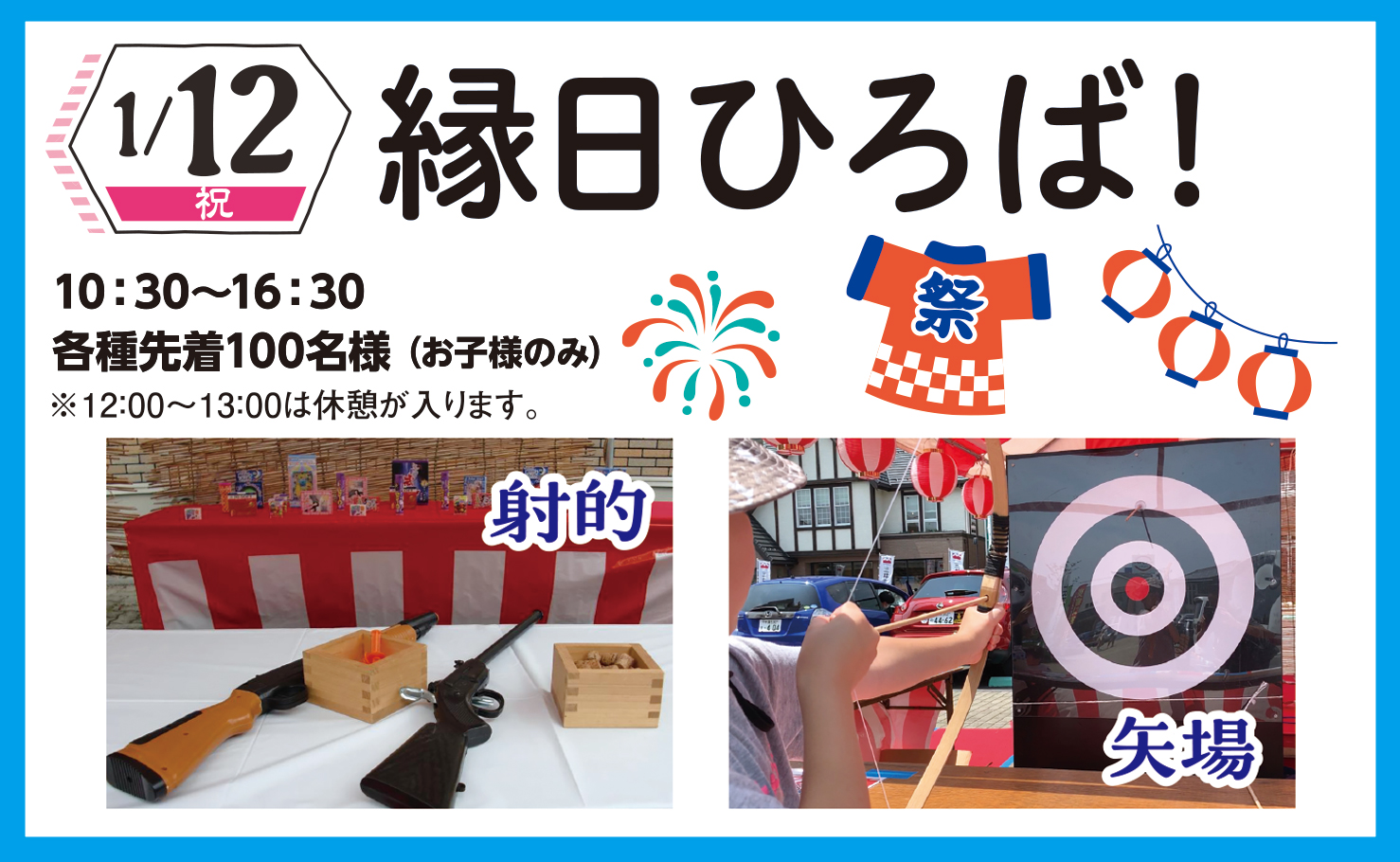 ●日程:1/12(祝)●時間:10:30~16:30●参加:各種先着100名様(お子様のみ)